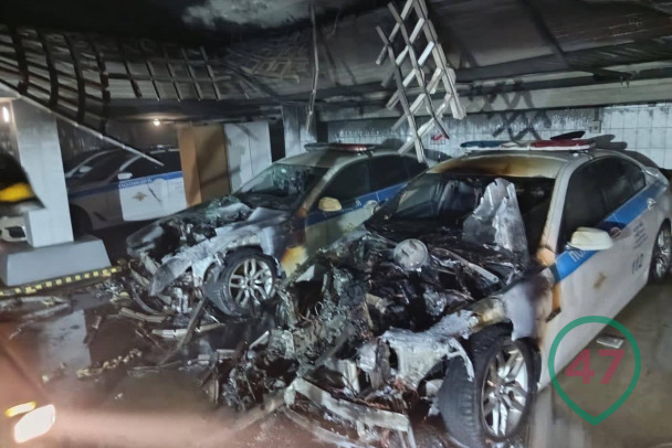 В распоряжении 47news утром 18 декабря появилось фото последствий пожара на паркинге отдельного специализированного батальона ДПС Госавтоинспекции ГУ МВД по Петербургу и Ленобласти. В кадре - обугленные моторные отсеки и кузовы двух BMW 5-й серии. На дверях - наклейки-ливреи, но восстановить этот металл невозможно. Над служебными автомобилями - потолок в копоти, свисают конструкции обрешетки.