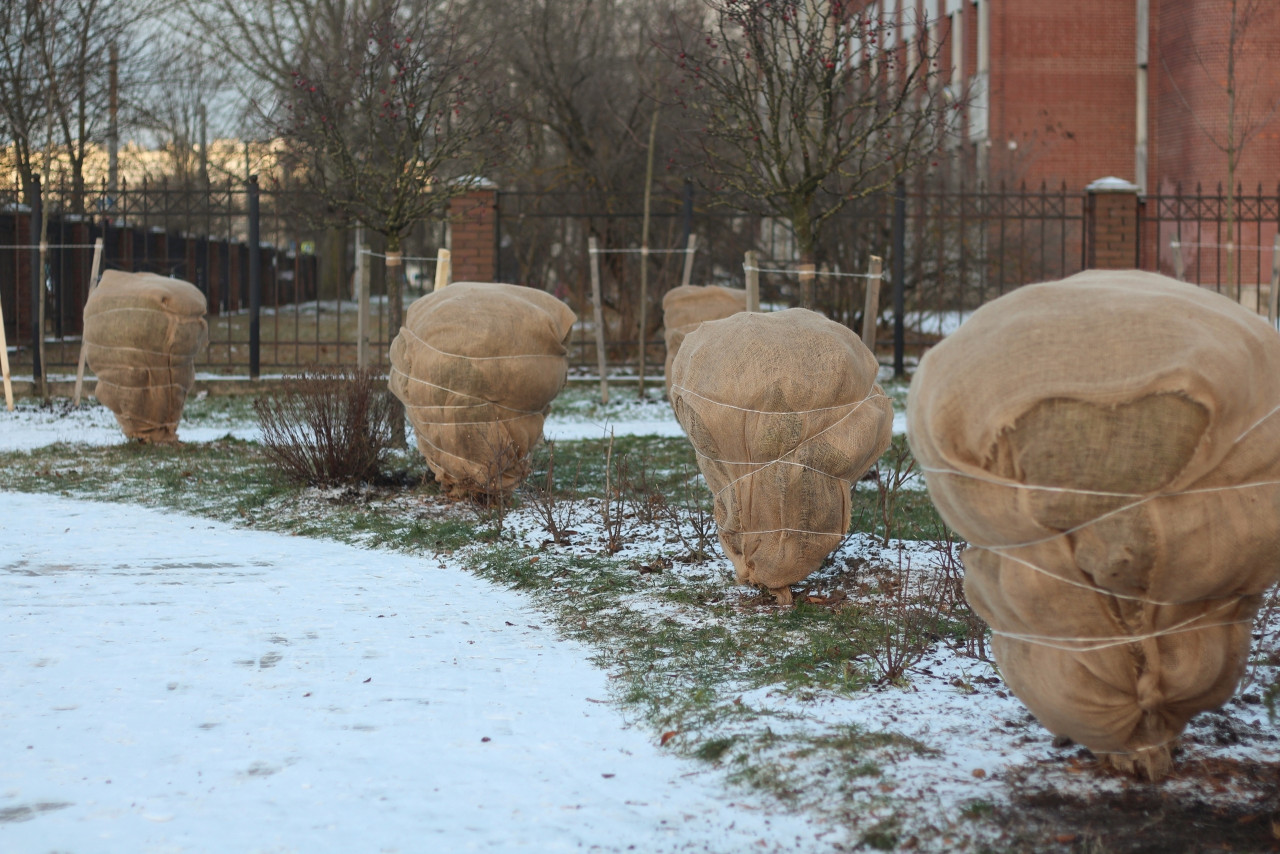 Как сообщили в комитете по благоустройству Петербурга 25 декабря, специалисты укрывают молодые туи в скверах и парках на время холодов. Это необходимо, чтобы предотвратить обмерзание ветвей, разломы под мокрым снегом и солнечные ожоги.
