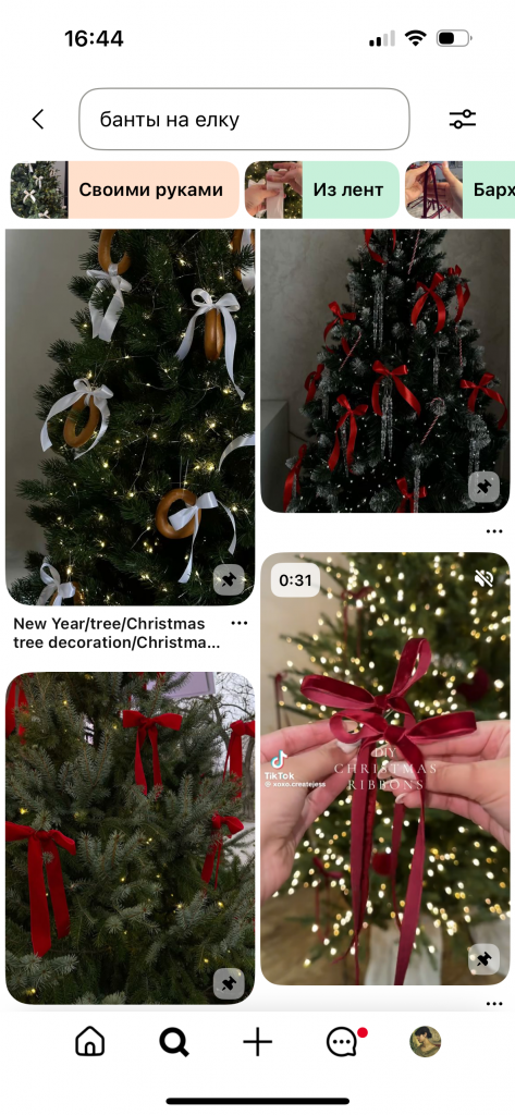 В Российской империи с елками было сложновато – они не приживались довольно долго. Исторически мы остались с шариками, гирляндами и бумажными украшениями. Бантики на отечественных елках стали активно появляться только последние два года. Мода пришла с Запада, когда все резко впали в ностальгию. А в наши дома - прямиком из эскапизма соцсетей. TikTok завален обучающими видео – как создать такой стиль самостоятельно. Да и другие платформы. Например, Pinterest, популярный у дизайнеров и обычных девушек.