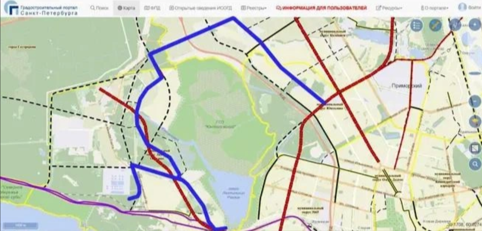 Комитет выпускал похожее распоряжение и в прошлом году, тогда карта выглядела иначе. В обоих случаях речь идет о старом проекте трамвайной линии от станции метро "Парнас" до Бугров. Говорили о нем еще в 2020 году, но только в ноябре 2025 года стало известно, что контракт на проектно-изыскательские работы хотят заключить до конца года.