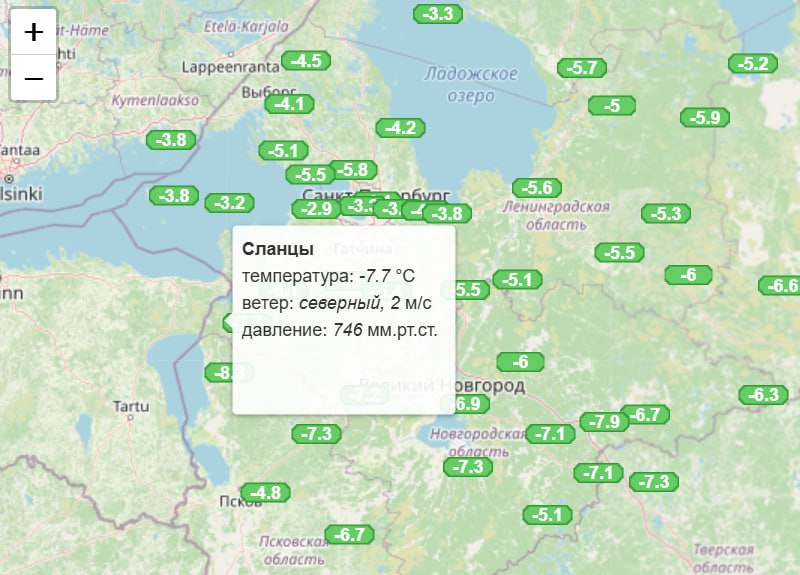 Самая высокая (-2,9) этим утром зафиксирована в деревне Шепелёво в северо-западной части Ломоносовского района. Самая низкая – в городе Сланцы на западе Ленобласти.