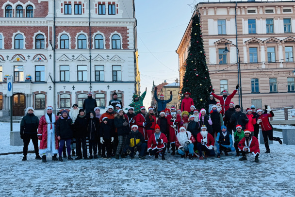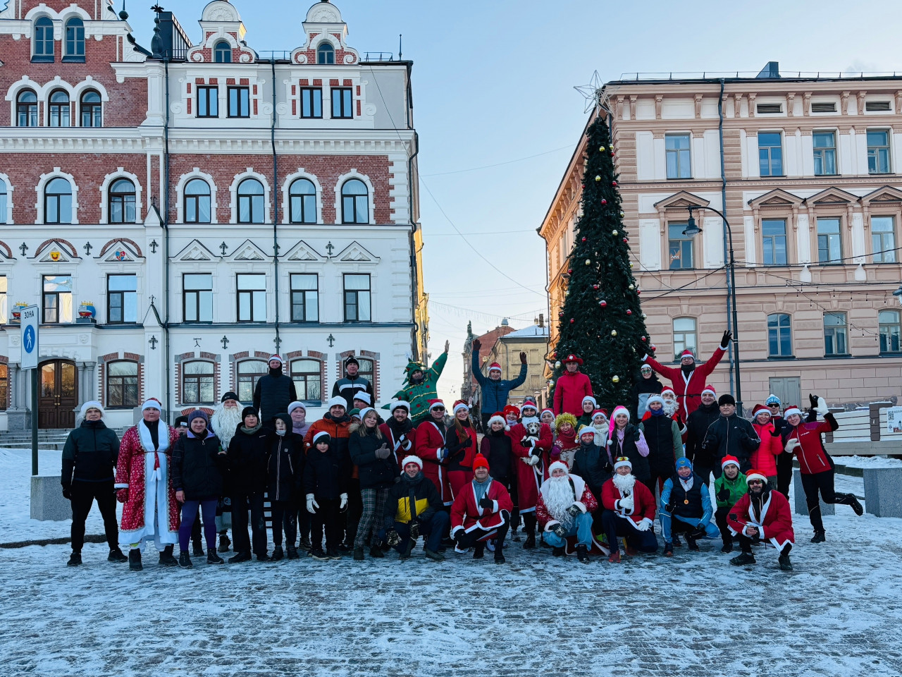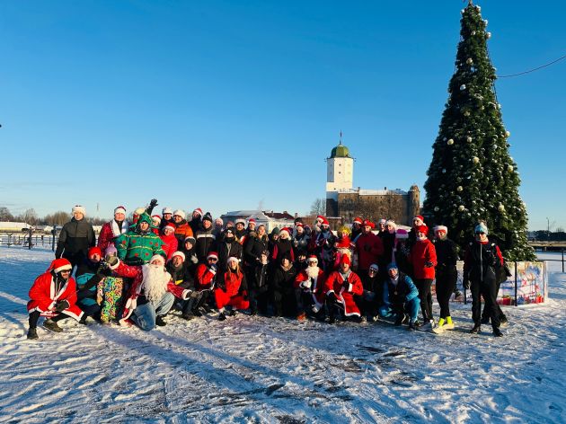 Фото с забега Дедов Морозов 1 января выкладывают в пабликах Выборга. Само действо прошло в 12 часов, когда, вероятно, в городе еще спали и видео, возможно, не сняли. Во всяком случае 47news его не нашел. Зато есть много фото.