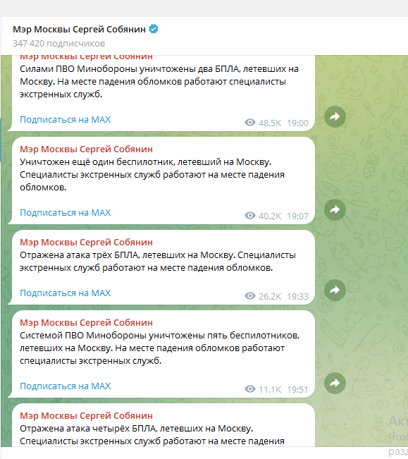Как писал 47news, 27 декабря Собянин за несколько часов сообщил о 26 сбитых БПЛА.