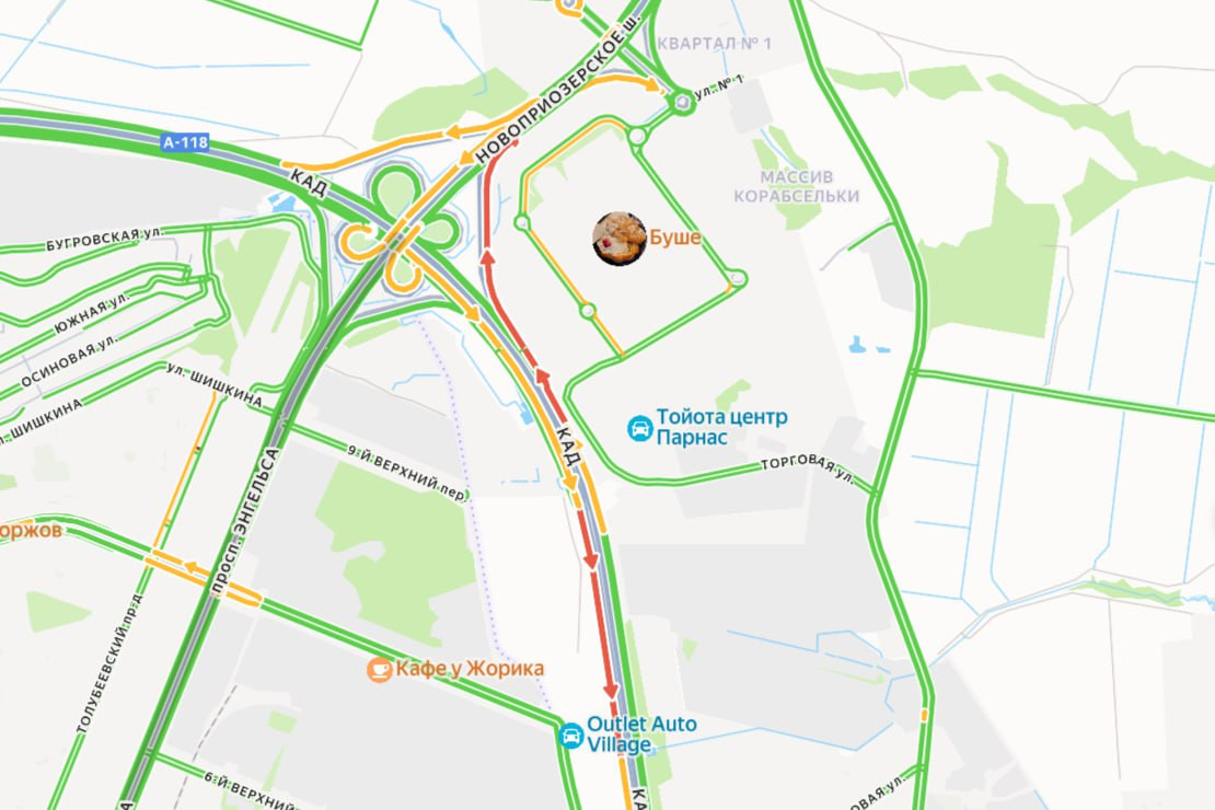 По данным "Яндекс Карт", к 13 часам в сторону Бугров и обратном направлении наблюдаются заторы около километра.