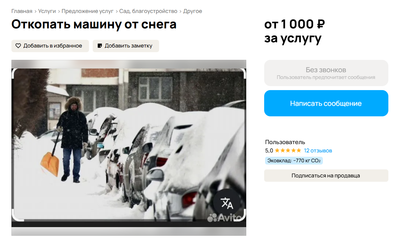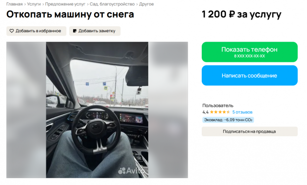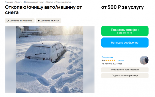 Ливневые снегопады спровоцировали петербуржцев на предложение оригинальных услуг - расчистки авто от снега или вызволение машины из сугроба. 10 января сразу несколько объявлений можно найти на профильном сайте. Цены - щадящие, от 500 до 1200 рублей.