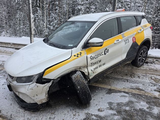 В соцсетях 12 января публикуют последствия ДТП на трассе Р-23 "Псков" у поселка Мшинская. В кадр попал кроссовер Geely, задняя часть которого поднята на металлическом барьере. У иномарки-такси оказались вырваны передние колеса и часть бампера.
