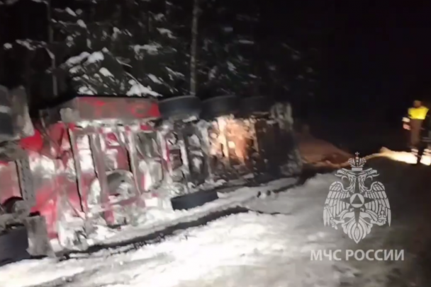 Как сообщает ГУ МЧС России по Ленобласти вечером 15 января, поступил сигнал о ДТП на 451-м километре трассы А-114 "Вологда – Новая Ладога" у Усть-Шомушки. По предварительной информации, водитель автомобиля, перевозившего 31 кубометр бензина, не справился с управлением. Машина съехала в кювет и опрокинулась на бок.
