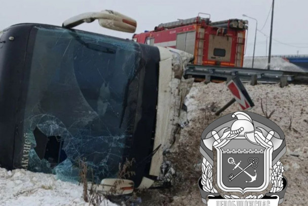 Как сообщалось ранее, около двух часов дня автобус Yutong на Алексеевском виадуке - части федеральной трассы "Нарва" - выехал в кювет и рухнул на бок. Известно, что во время ДТП в салоне были водитель и 15 пассажиров.