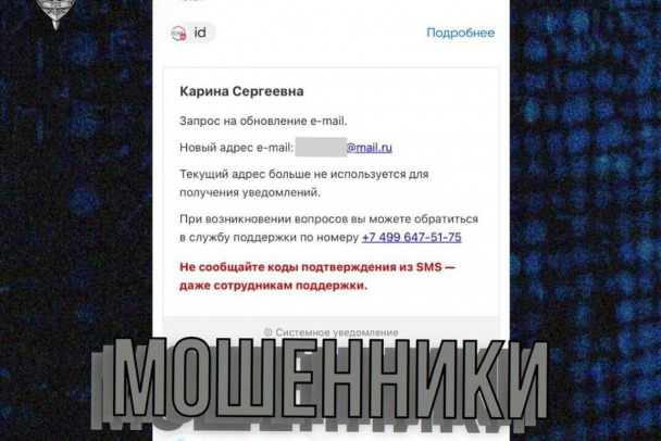 "В письме указан поддельный номер телефона техподдержки, при этом мошенники используют схожие с официальными логотипы, адресно обращаются к пользователю и даже советуют никому не сообщать коды подтверждения из смс", - отмечается в сообщении.