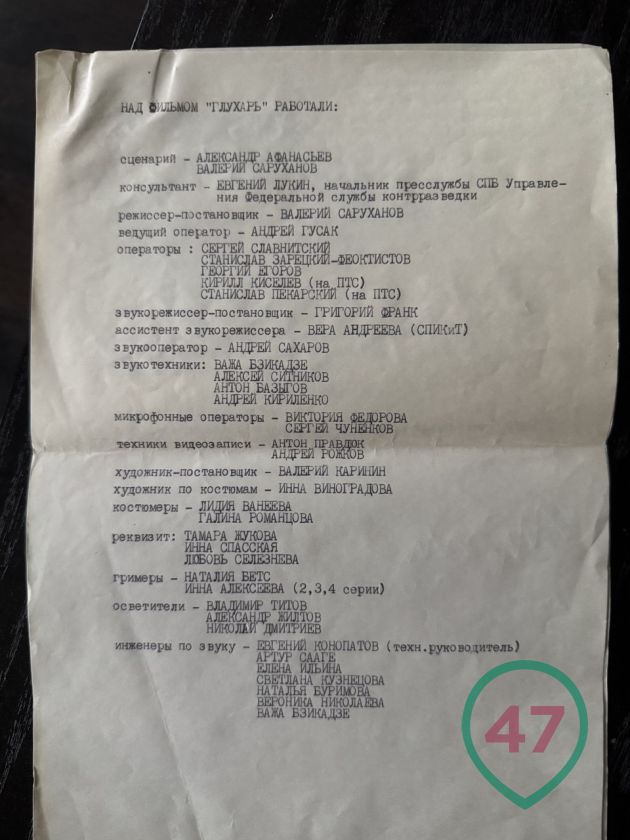Режиссер сериала "Глухарь" Валерий Саруханов писал сценарий с Александром Афанасьевым. По сюжету, главный герой картины Андрей Кандов влюбил в себя следователя и сбежал из "Крестов", делом занимается КГБ. В съемочной группе - под 70 человек. В главных ролях - Владимир Еремин, Елена Попова, Лариса Луппиан, Сергей Лосев. Последние трое позже стали народными и заслуженным артистами России. Среди актеров озвучания - ныне покойный Иван Краско.