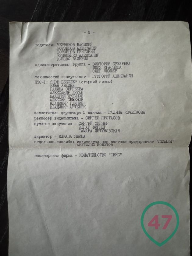 Разумеется, спонсор съемок был отмечен и в титрах. На финальных кадрах АО "Гепард" - между петербургским управлением Федеральной службы контрразведки и Главным управлением внутренних дел Санкт-Петербурга и области.