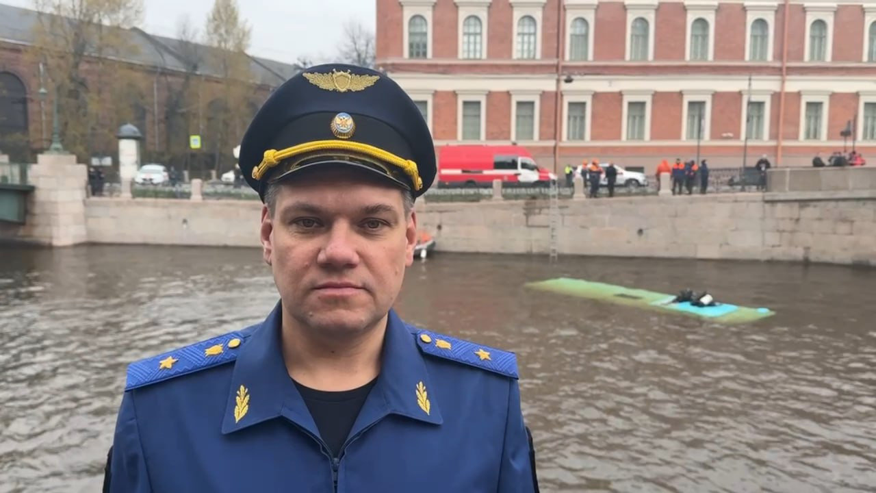 Из последнего — трагедия с упавшим в Мойку у Поцелуева моста пассажирским автобусом. Именно он и уже зам с места аварии, на фоне выглядывающего из воды лазурного "Волгабаса" отчитывался перед петербуржцами.