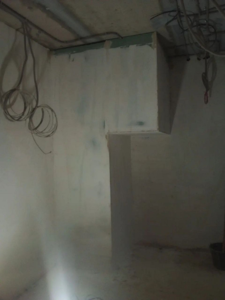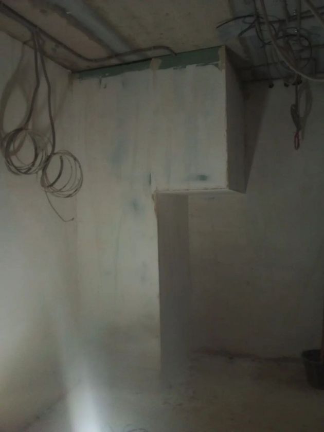 Застывшие работы сняли на видео. Назначение залов с незавершенной отделкой уже угадывается по установленному "аквариуму", в санузлах на стенах - керамогранит, торчат водопроводные трубы. Входные группы оформлены откосами из гипсокартона, в ожидании оставлены не закрепленными ПВХ-панели.