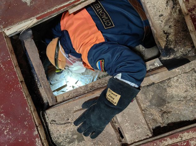- Чтобы попасть к собаке, пришлось вскрыть пол у соседей, с разрешения, конечно. По осмотру выяснилось, что собака еще не родила, но это вот-вот случится… Достать через пол тоже не получится. Собака крупная, беременная и может перемещаться. Ну хотя бы поле для наблюдения теперь в доступе, – описали ситуацию волонтеры.