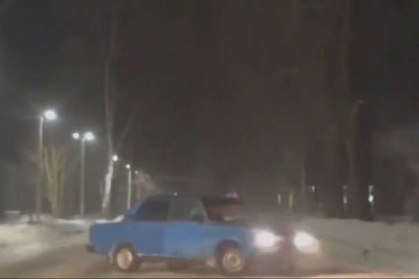 Неизвестный дрифтил на автомобиле ВАЗ, после ДТП местные вызвали сотрудников ГИБДД. Сотрудники нашли машину и попытались притормозить любителя скорости.