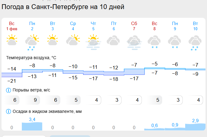- Петербургу потепление стоит ждать на следующей неделе: в понедельник пройдёт небольшой снег, после полудня будет -7…-9 °С, - пообещал ведущий специалист центра "Фобос" Михаил Леус в своем телеграм-канале.