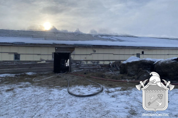Как сообщили в ГКУ "Леноблпожспас", в 13:10 2 февраля поступил сигнал о пожаре в деревне Курковицы. В одноэтажном коровнике загорелась кровля. Общая площадь здания - 2000 квадратных метров.