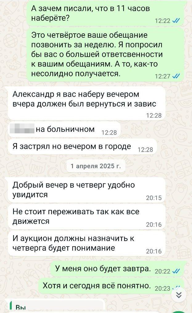 - Вот тут было для меня удивление, так как мне было отказано. Я сразу начал их (М., Г. и Ф., - прим. ред.) напрягать. Говорю, мы договаривались о другом. Я как бы должен был участвовать в аукционе и победить. Видимо, это было вранье, или продавить не смогли, – недоумевает собеседник.