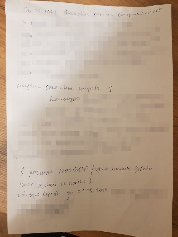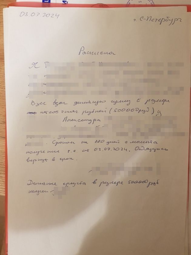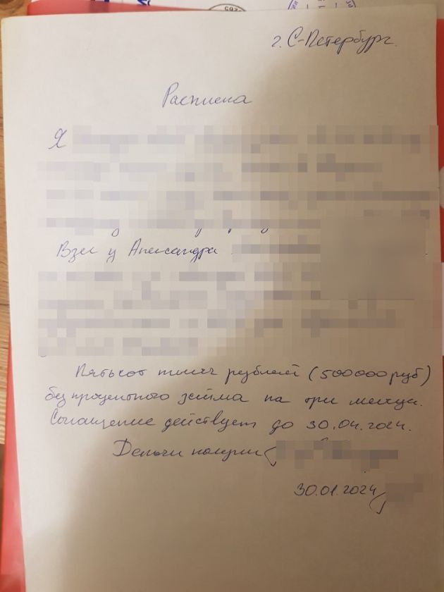 Петербуржец Александр в январе 2026 года направил в суд иск с требованием взыскать долг с гражданина, назовем его Г., по расписке в сумме миллион рублей. В исковом заявлении (есть у 47news) говорится, что Г. взял взаймы у него дважды по 500 тысяч еще в 2024-м году, часть обязался отдать через 3 месяца, вторую – через полгода, но этого не сделал. Еще одно исковое готовится к другому гражданину, Ф., который тоже взял и не отдал истцу более миллиона, что подтверждается распиской. Нашему изданию Александр признался, что деньги эти на самом деле – взятки, которые он давал через Ф. и Г. для содействия в решении вопроса с землей в Приозерском районе Ленобласти. Вот только ничего не получилось.