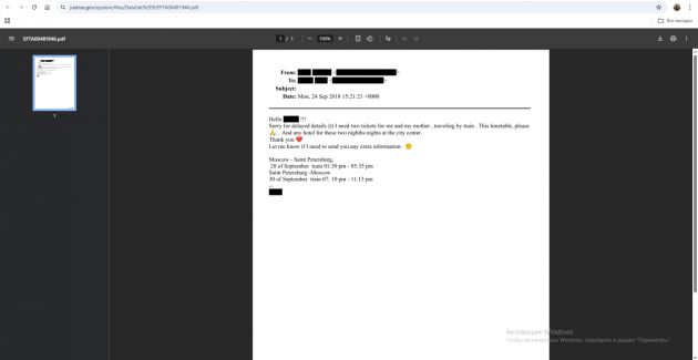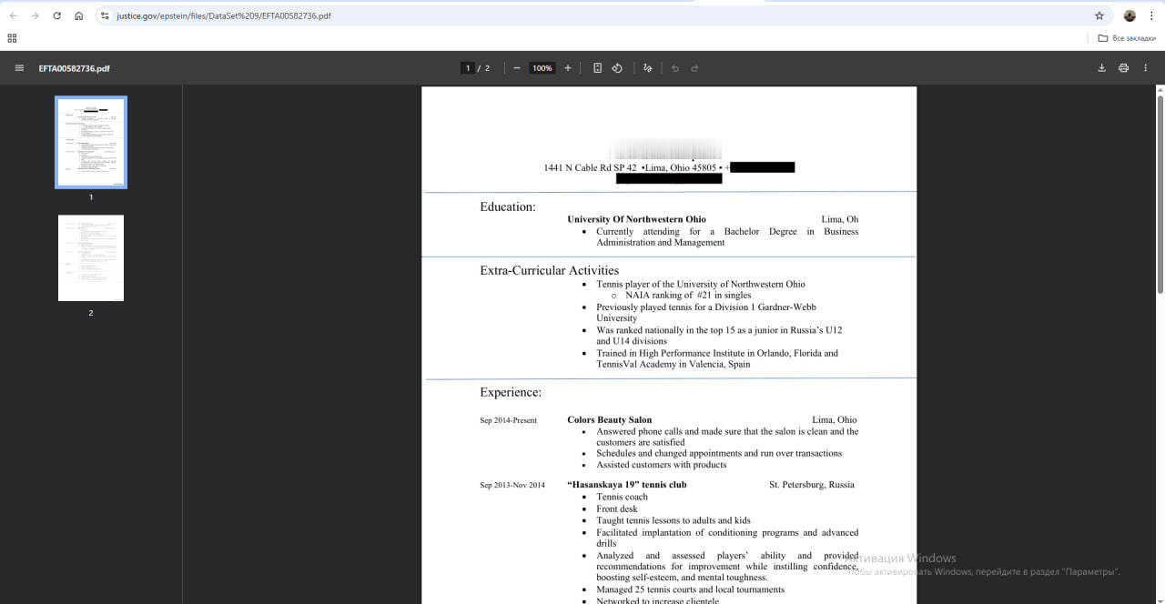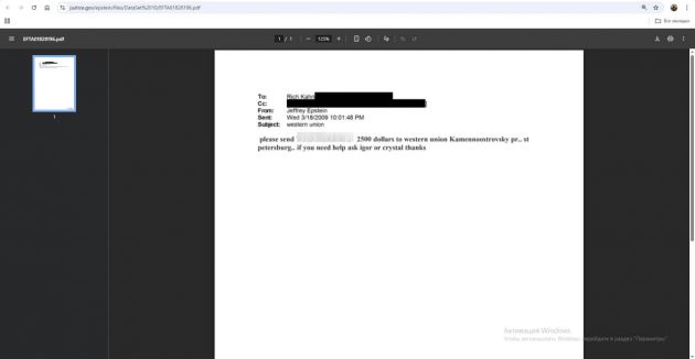 скриншоты файлов Эпштейна с сайта Министерства юстиции США