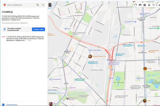 С 23:00 4 февраля до 6:00 5 февраля закроют съезд на Витебскую развязку с ЗСД при движении с севера на юг.
