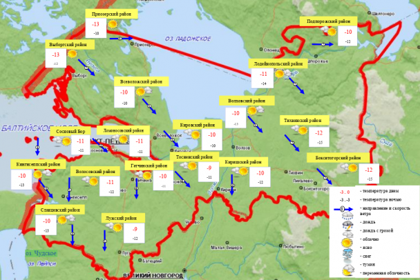 Ночью за 20 с минусом, днем тоже минус, а еще холодный ветер - такую погоду обещают синоптики Ленинградской области.