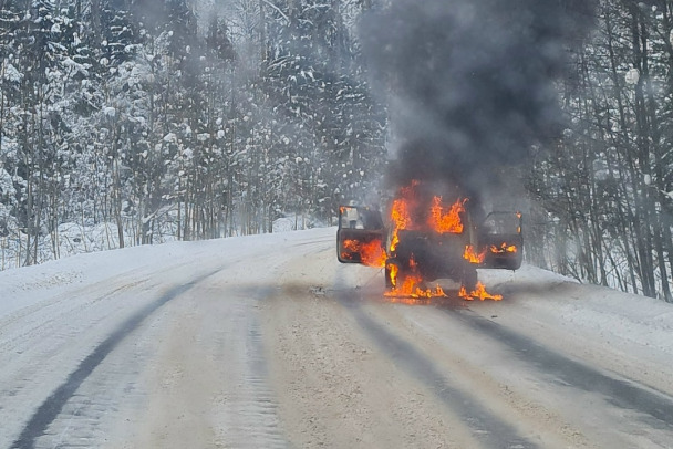 Как сообщает ГУ МЧС по Ленобласти, в 14:25 8 февраля поступил сигнал о возгорании легкового автомобиля на трассе М-10 "Россия" у деревни Трубников Бор.