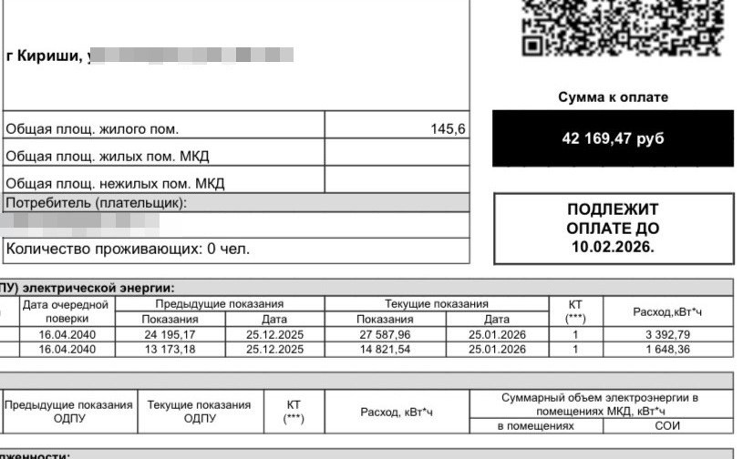 Например, одноставочный тариф для жителей садоводств вне границ населенных пунктов по первому диапазону с января 2026-го года - 6,70 рубля, для второго, по которому объем энергопотребления от 2701–4500 кВт.ч.– уже 12,84 рубля. Кто превысит и этот лимит, получит счета по тарифу 17,26 рубля за 1 кВт.ч. В Киришах, к примеру, по словам жителей, некоторые в январе попали в этот третий диапазон.