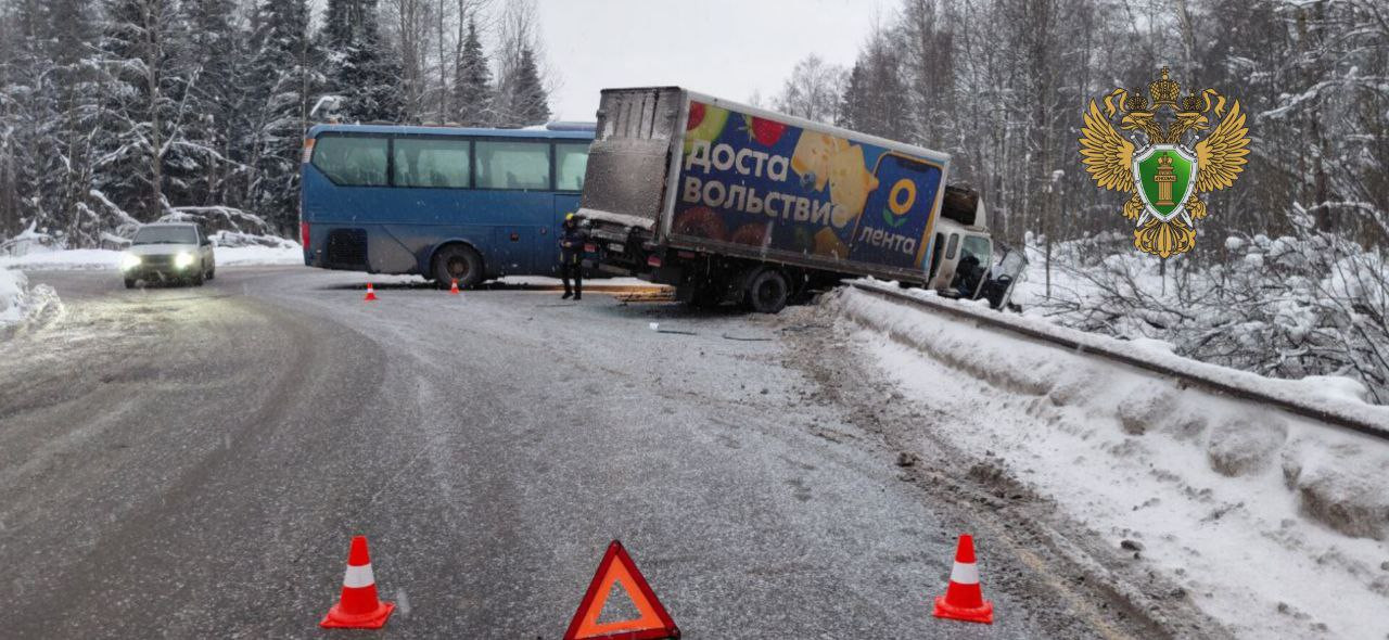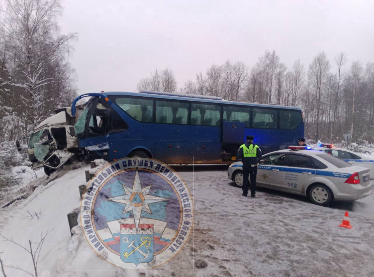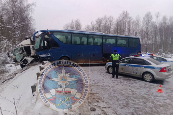 В прокуратуре Ленинградской области сообщили, что по факту произошедшего организована проверка. По данным надзорного ведомства, ДТП произошло около восьми утра. Автобус, выполняя поворот, столкнулся с грузовиком.