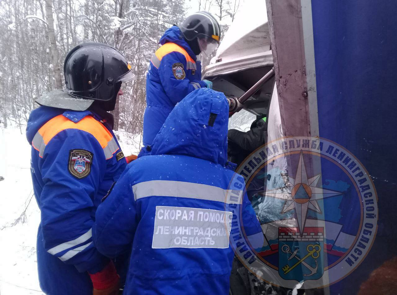 В службе скорой помощи Ленобласти рассказали, как помогали пострадавшему. Фельдшеру под руководством спасателей пришлось забраться в искорёженную кабину и сделать обезболивание. После этого водителя извлекли из кабины.