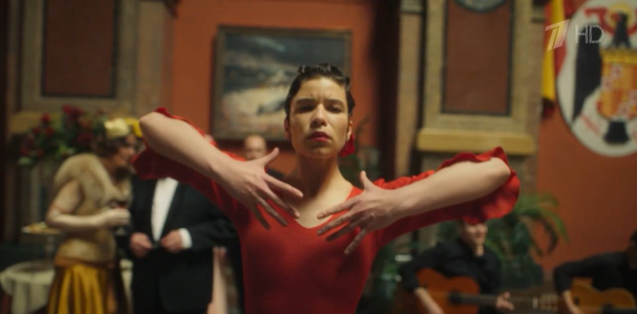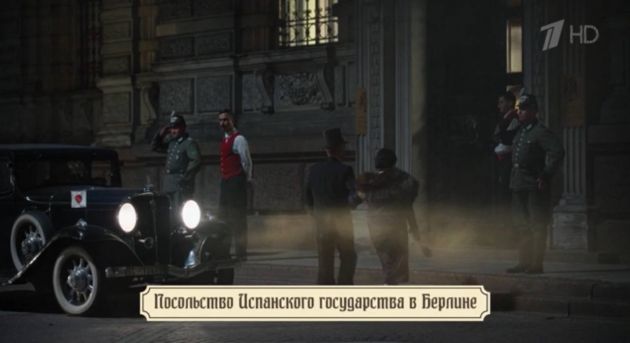 Автомобили нацистов катаются по дороге у Дворца великого князя Михаила Михайловича. А потом сюжет начинает развиваться интереснее. Управляющий того самого "Дома орла" по фамилии Хартманн приезжает к посольству Испании, которое, вообще-то, академия Штиглица. Там проходит вечеринка сливок берлинского общества. Для них исполняет фламенко серьезная танцовщица в красном платье. А кругом картины. На них, впрочем, не фокусируются.