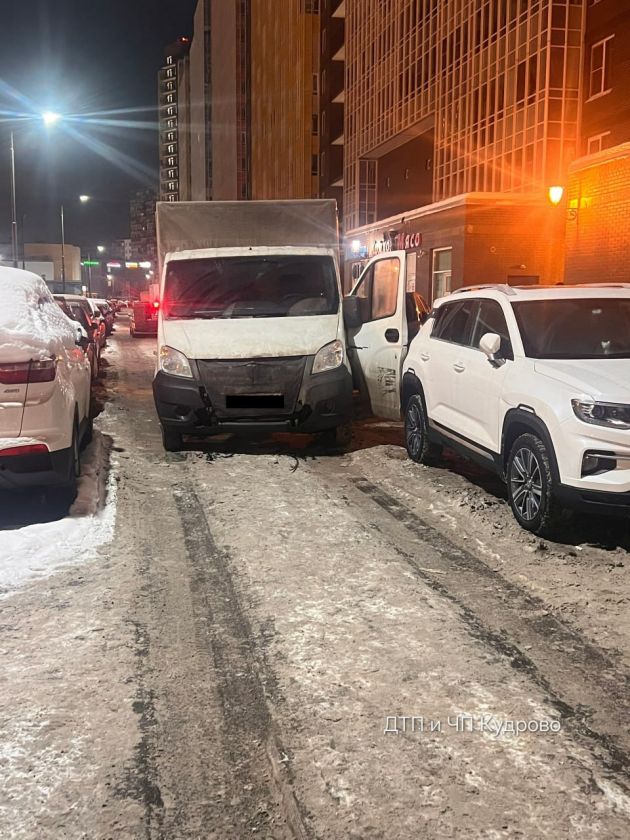 В соцсетях 13 февраля распространяется видео, снятое, как утверждается, у дома №8 на Европейском проспекте в Кудрово. На нем водитель легковушки врезается в "Газель" и тащит ее несколько метров.