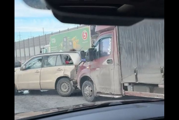 Кадры ДТП прикрепляют в соцсетях. По словам очевидцев, участников аварии может быть пять.