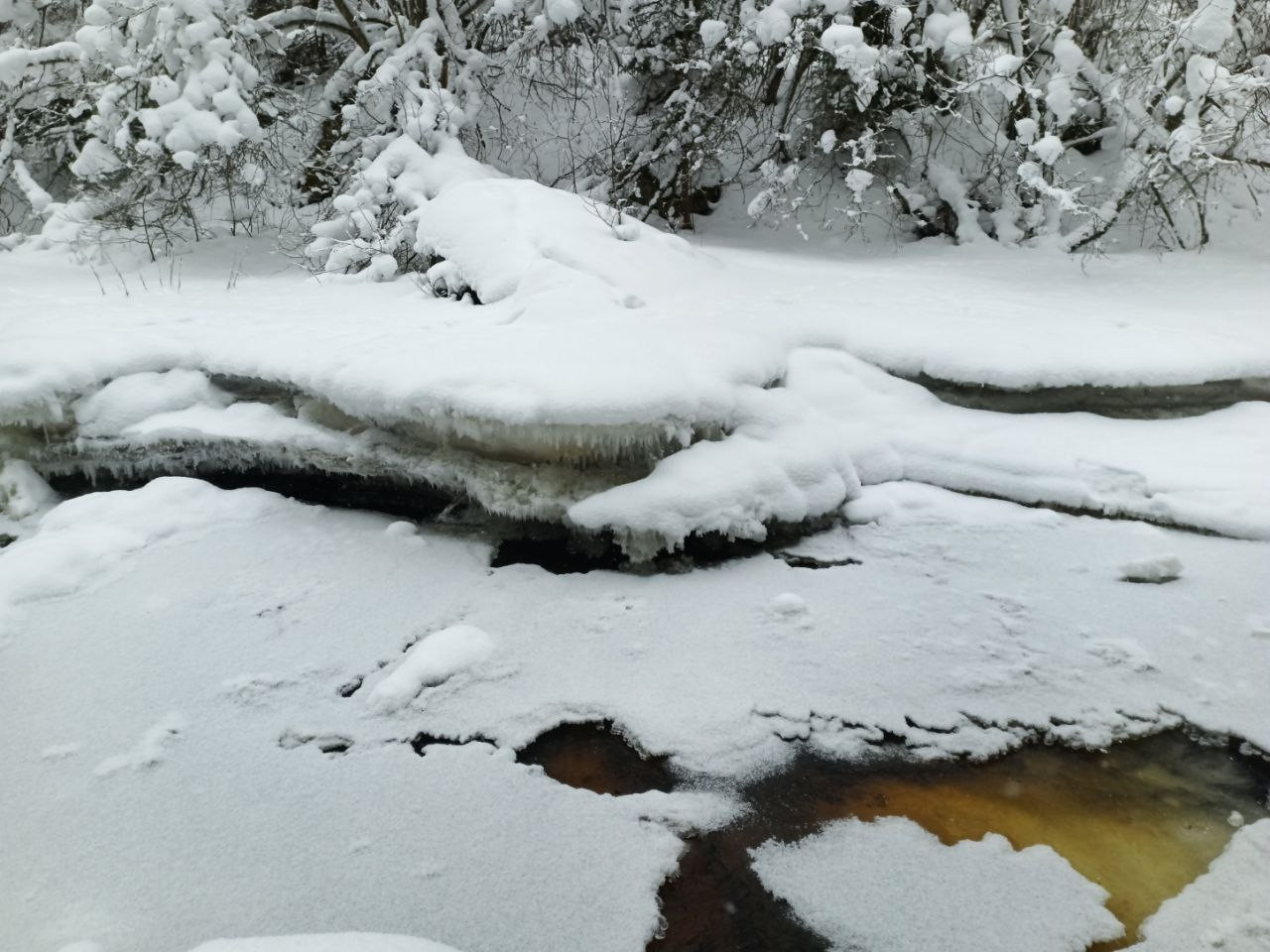 И хотя ледяные террасы выглядят красиво, на практике такая ситуация представляет угрозу для околоводных животных, таких как бобры, выдры, ондатры, а также для оляпки и рыбы, сообщили специалисты Дирекции. Посетителям не рекомендуют выходить на лед.