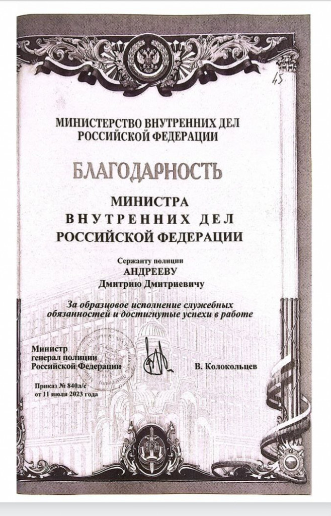 В органах внутренних дел Дмитрий Андреев - около пяти лет, пришел после срочной службы в армии. Министром внутренних дел награжден за спасение утопавшего. Близкие вспомнили, что дома много высказывался о кумовстве маленького города, несправедливости внутри системы или в отношениях между ведомствами: "Ловишь, жизнью рискуешь, а какой-нибудь начальник наркомана этого отпускает".