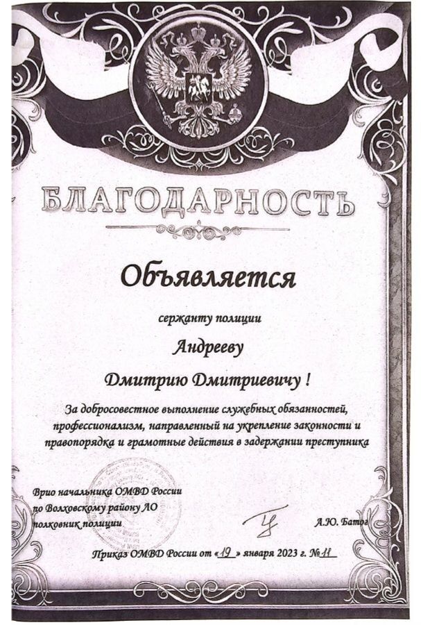 К 18 февраля крайне неординарно развернулась история старшего сержанта полицейского патруля из Волхова, 25-летнего Дмитрия Андреева. Серия совпадений привела к тому, что на днях Волховский городской суд приговорил его к шести годам колонии строгого режима и штрафу в 350 тысяч рублей. Следствие и гособвинение настаивали на наборе из превышения должностных полномочий, незаконном проникновении в квартиру и служебном подлоге. Защита готовится к апелляции.