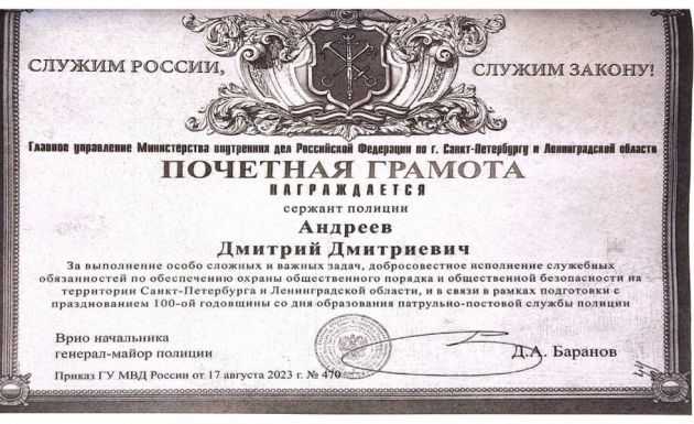 Точкой невозврата стал ноябрь 2024 года. Бойфренд крепко избил подругу до потери сознания, сбросил с лестницы, кидал через бедро. Женщина с сотрясением дошла до полиции, оформила заявление. Но сыну о случившемся не рассказала. 27 ноября 2024 года старший сержант Андреев заступил на дежурство в патруль и получил распоряжение от начальства - доставить в отдел дебошира, чтобы оформить административный протокол о побоях.