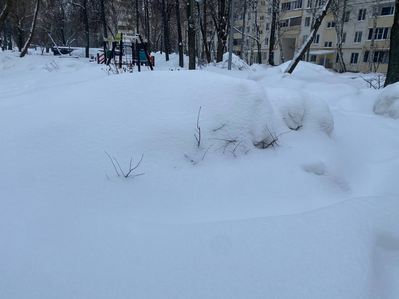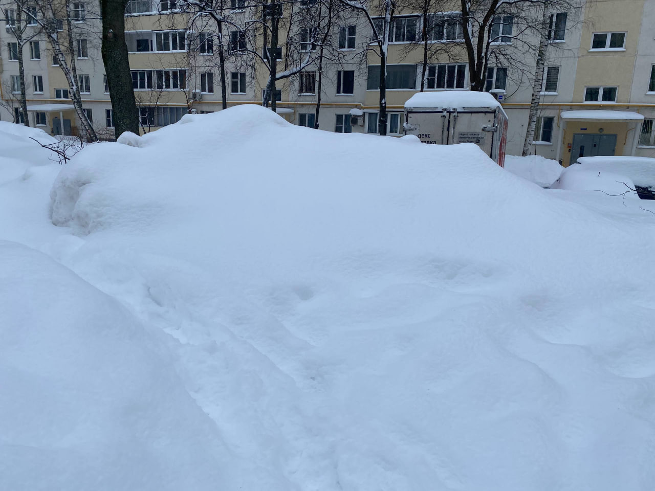 Во дворах Москвы образовались огромные сугробы, рассказал 47news житель столицы Виктор.