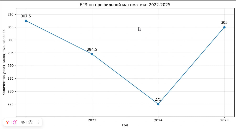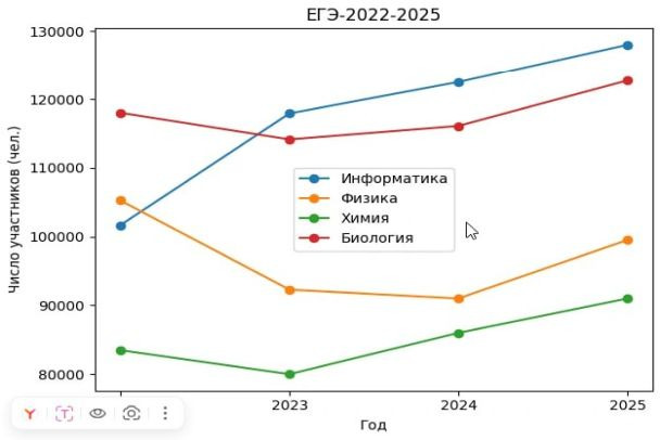 Как ранее писала "Фонтанка", анализ данных за 2022–2025 годы подтверждает общий рост интереса к естественно-научному блоку, однако динамика внутри группы неравномерна, а основной вклад в суммарный показатель вносит информатика. При этом у биологии, физики и химии в 2023 году был упадок популярности, а дальше показатели начали расти, а информатика только растет с 2022 года, при этом в 2023 году был резкий скачок по числу сдающих. По материалам ФИПИ, цифры по профильной математике падали в 2023 и 2024 годах, рост пошел в 2025 году.