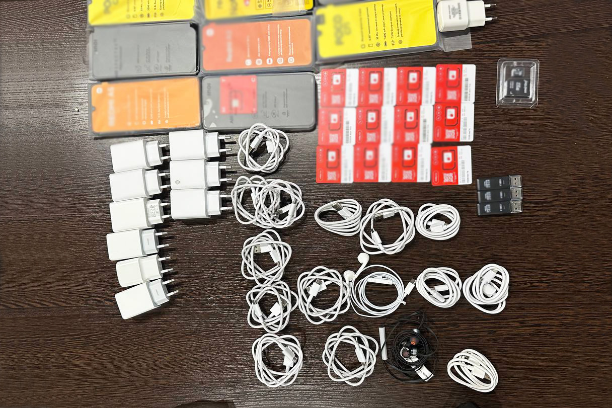В самом грузовике лежали мешки с гранулами для производства. Они же были приспособлены под тайники. Изъято 14 мобильных телефонов, столько же sim-карт операторов сотовой связи, 14 блоков питания, три USB-флешки, три USB-адаптера, наушники, 14 кабелей для зарядки мобильных устройств.