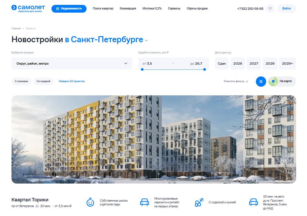 В масштабах федерального девелопера портфель в Ленинградской области и Санкт-Петербурге относительно небольшой - 10 жилых комплексов.