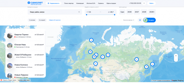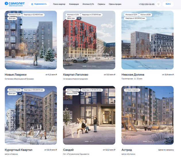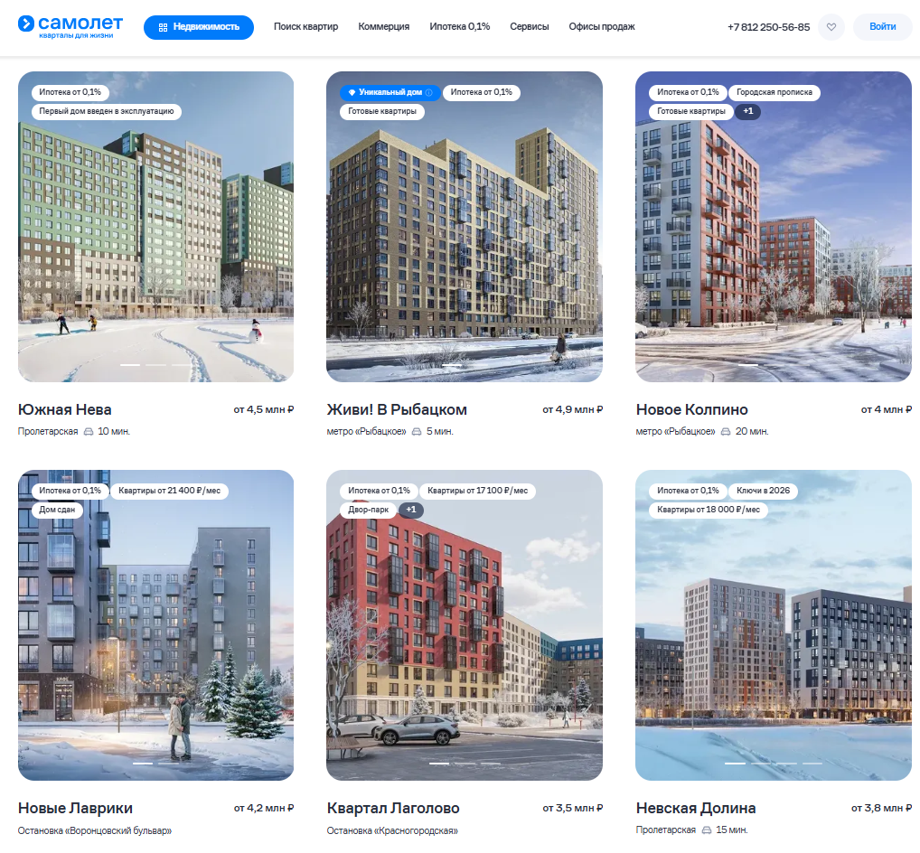 Принтскрины сайта ГК "Самолет"
