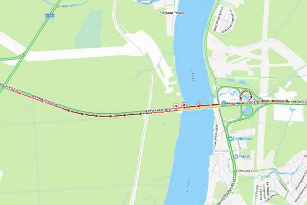 Судя по данным сервиса "Яндекс Карты" на четыре часа дня 27 февраля, багровые пробки образовались перед Ладожским мостом, расположенным на 40-м километре трассы Р-21 "Кола". В сторону Ленобласти затор на 3 километра, в обратном направлении - на 2 километра.