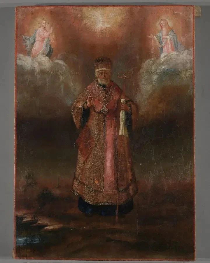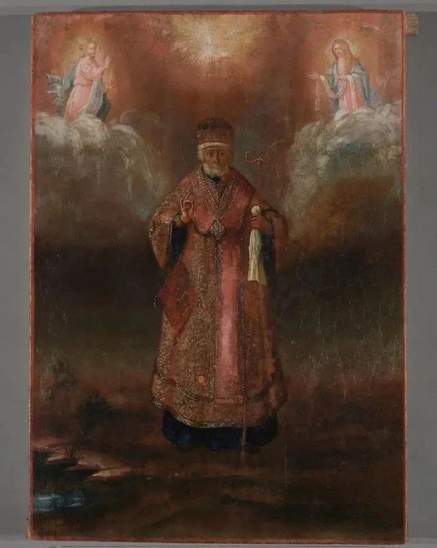Изображение Николая Чудотворца на иконе XIX века полностью отреставрировали в Ленобласти. До обновления нельзя было даже разглядеть фигуру святого.