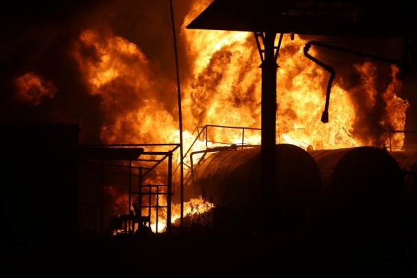 После ночной атаки беспилотников на Краснодарский край горит нефтебаза. Компрессорная станция в системе "Турецкого потока" не пострадала.