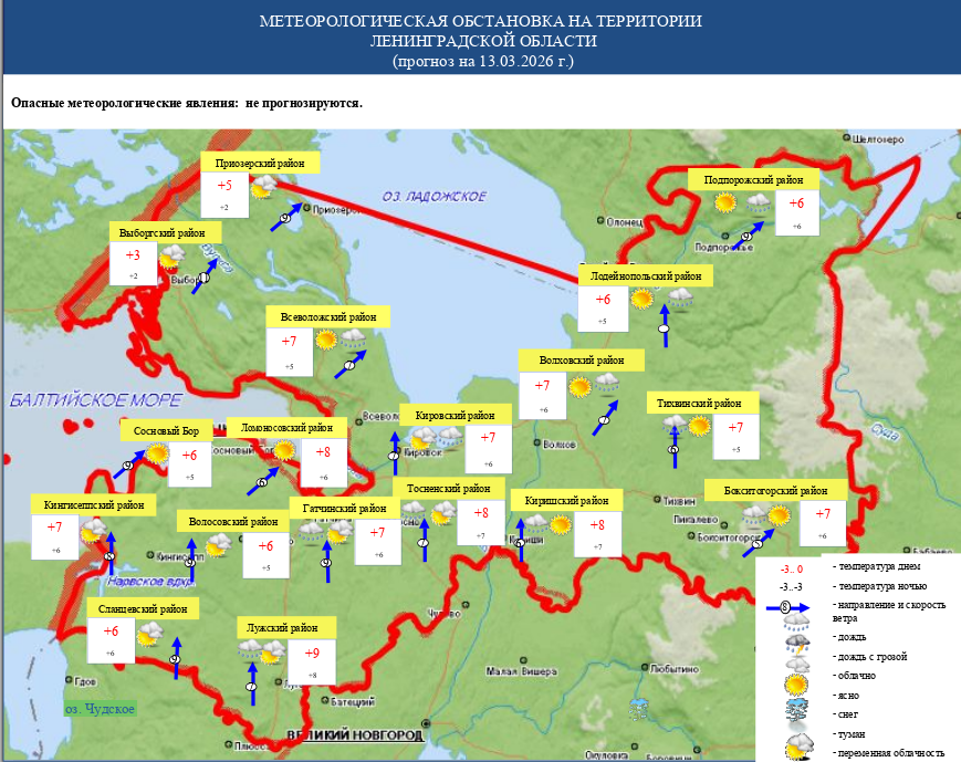 Как сообщается на сайте ГУ МЧС России по региону со ссылкой на "Северо-Западное УГМС" 12 марта, ночью будет облачно с прояснениями, в большинстве районов небольшой, местами умеренный дождь, туман, гололедица.