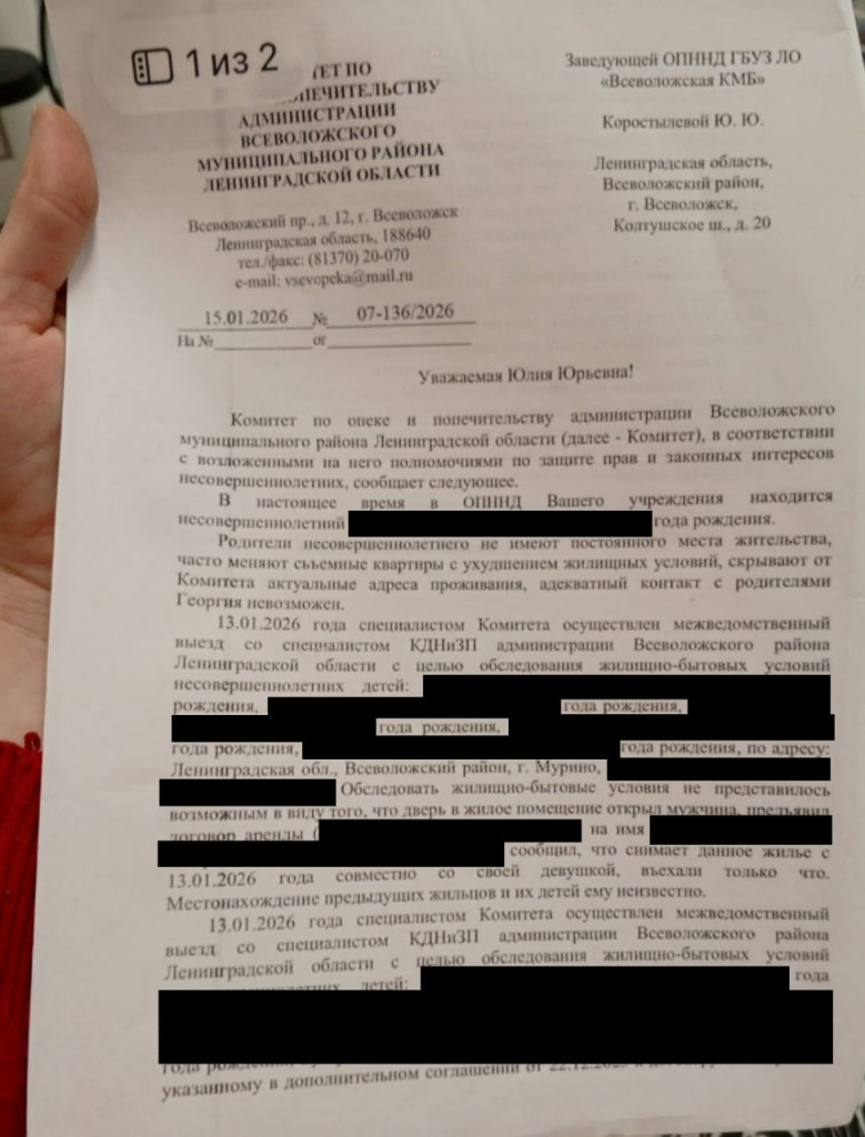 В администрации Всеволожского района Ленобласти 47news пояснили, что внимание на семью, действительно, обратили еще до рождения нового ребенка, и "на основании данных, поступивших от субъектов профилактики и личных обращений матери". По какому именно поводу женщина обращалась, не ответили.