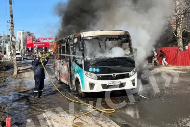 Сотрудники, которые занимались уборкой территории, потушили горящий ПАЗ в Мурино Всеволожского района Ленобласти.