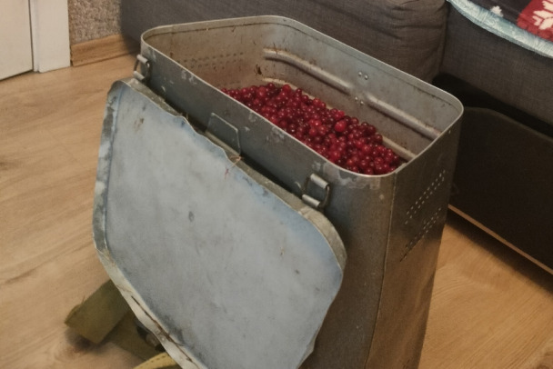 "Когда вышел на край болота, хотел повернуть уже обратно, ибо снега по колено. Думал набрать на морсик, но немного увлекся, получилось литров 25 с небольшим", - говорится в посте.