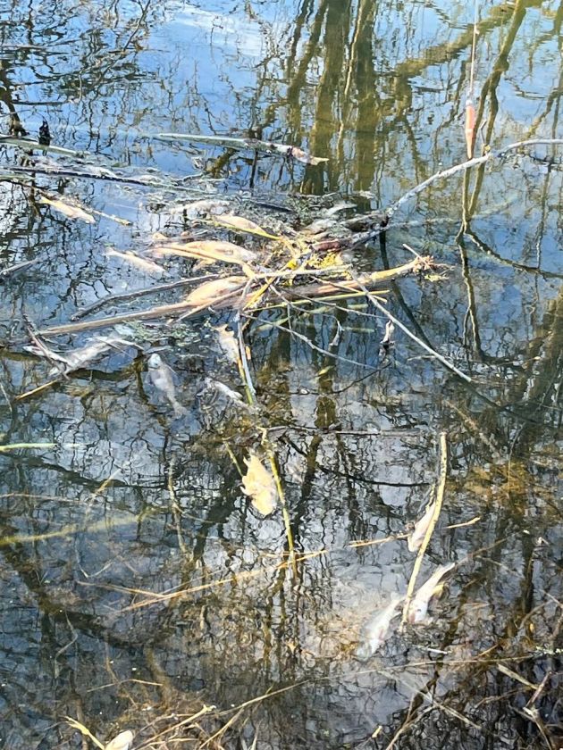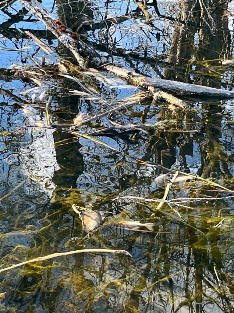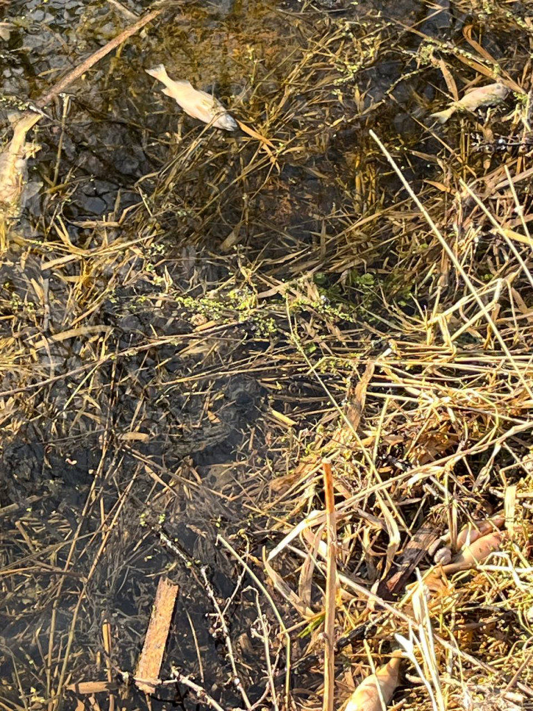 На кадрах с места можно насчитать с десяток тушек. На ситуацию обратили внимание в воскресенье, когда рыбаки пришли к речке, чтобы открыть сезон весенней ловли, но вместо этого пришлось наблюдать неприятную картину.